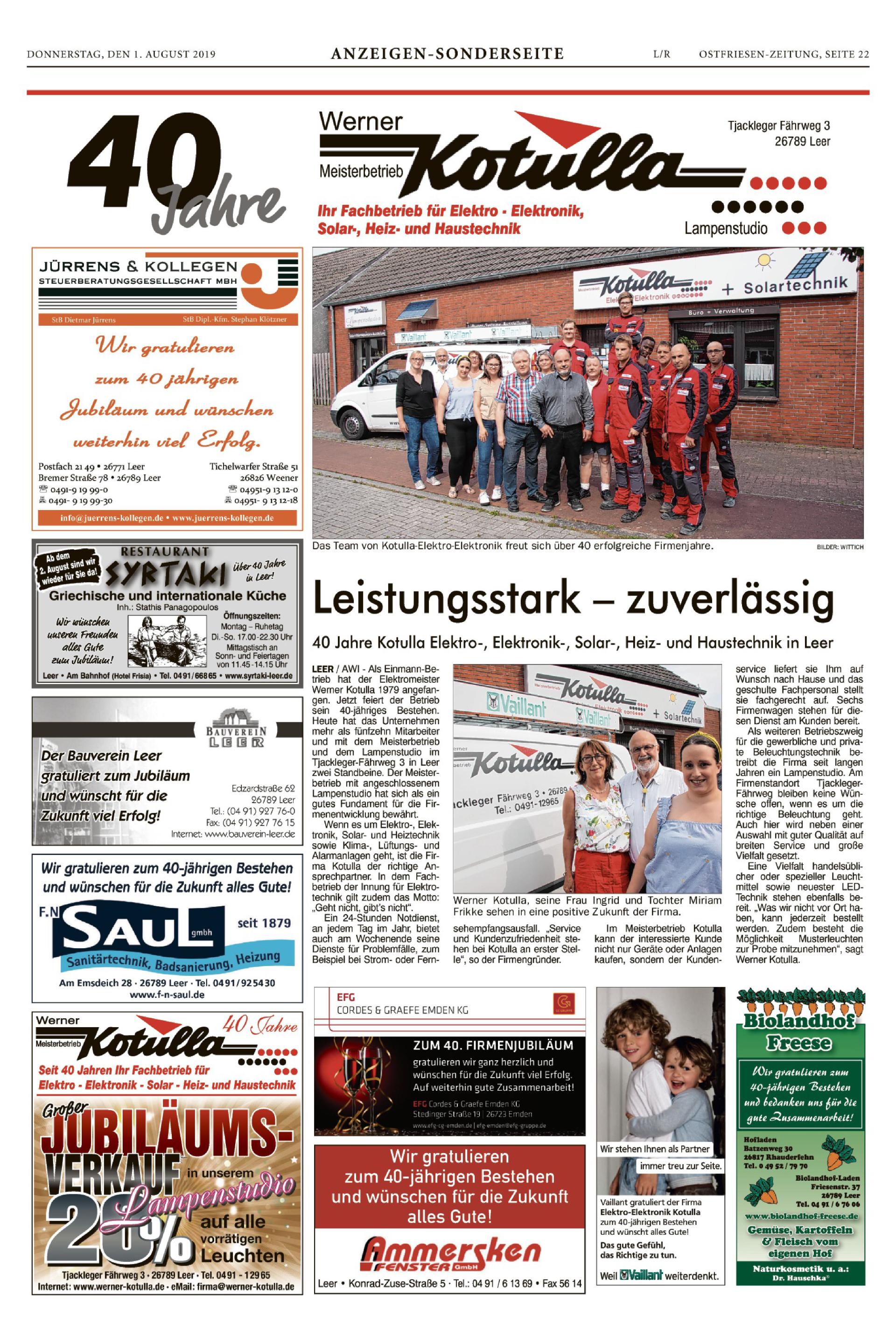 Bei der Firma Kotulla kann der Interessierte nicht nur Geräte oder Anlagen kaufen, sondern der Kundenservice liefert sie ihm auf Wunsch nach Hause und das geschulte Fachpersonal stellt sie auf. Fünf Firmenwagen sind unterwegs für diesen Dienst am Kunden.